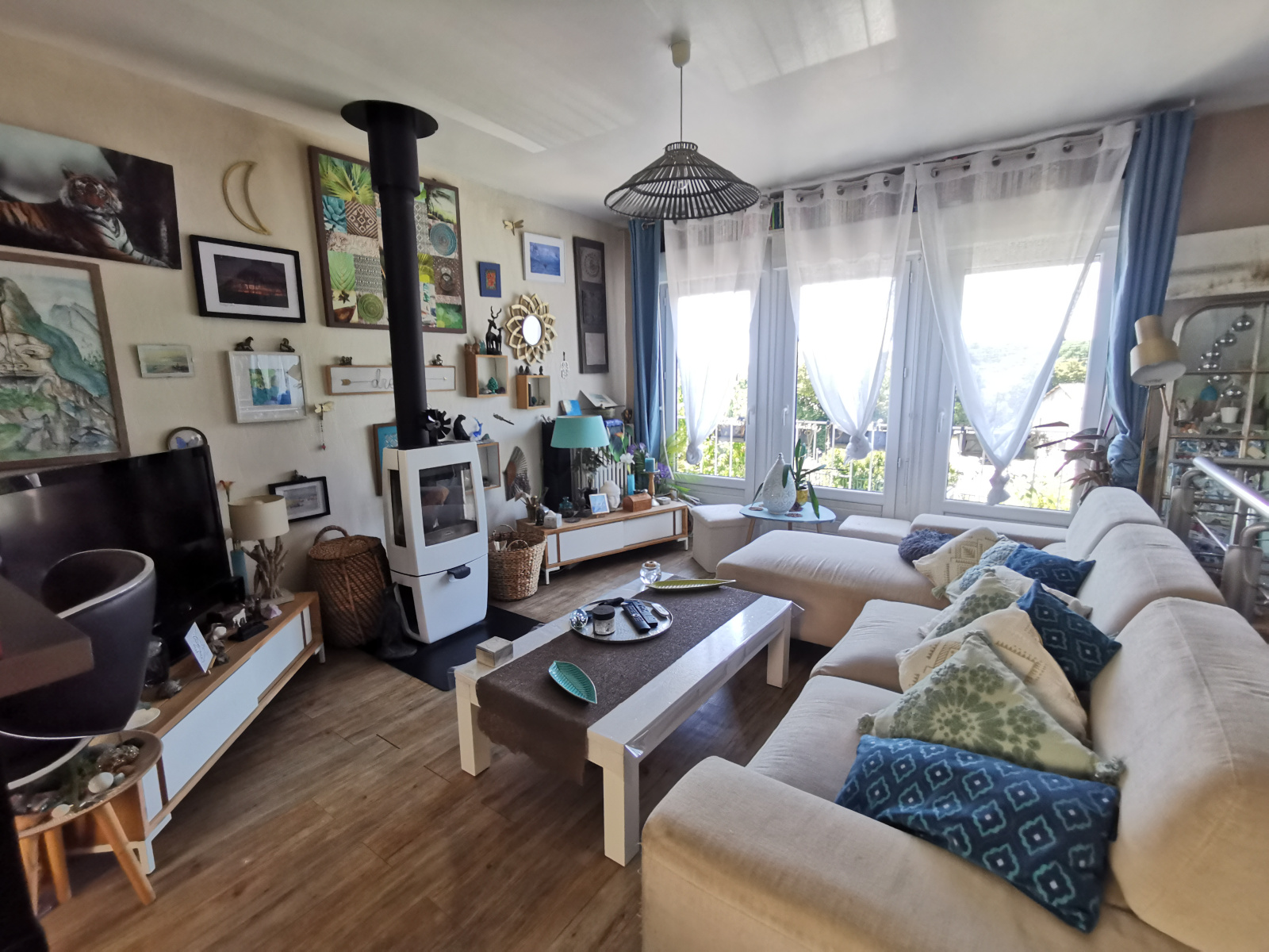 Au sous-sol se trouvent un garage, une cave et une chaufferie/buanderie (chaudière au gaz de ville production eau chaude). Agréable jardin sur l'arrière avec piscine hors sol.