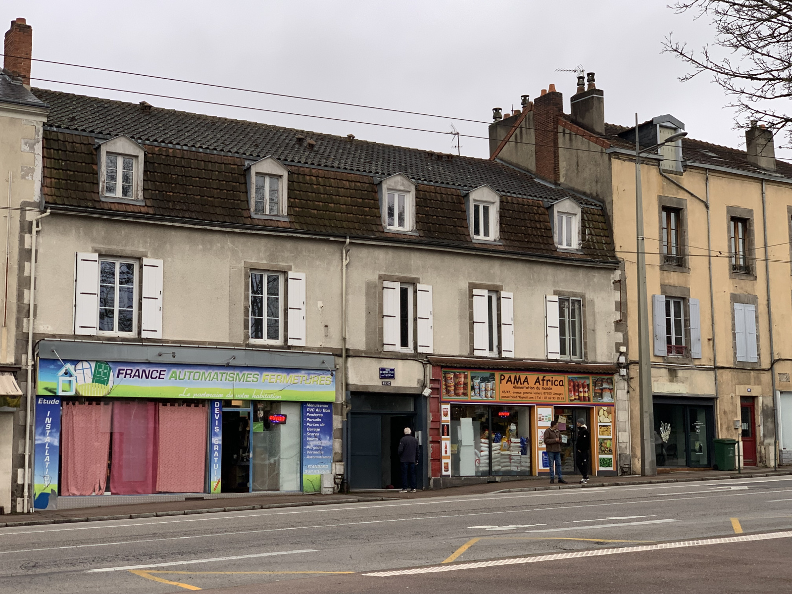 L'immeuble se compose comme suit : en rez-de-chaussée deux locaux commerciaux loués, deux remises et un appartement de type 1 bis en souplex.